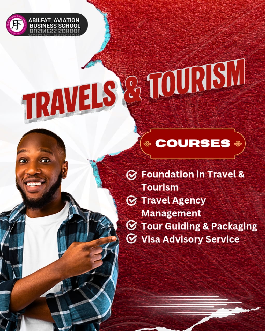 Abilfat Aviation Business School (AABS) is an Accredited Training Center (ATC) of the Institute of Tourism Professionals (ITPN) (TP352AABS), a CPD UK (787116) accredited Provider with three accredited (CMD) Certified Management trainers in her faculty and a skill training center (STC) of the National Board for Technical Education (NBTE). AABS is a subdivision of Abilfat & Associates Limited, a Travel Management Company existing since 2012 with Corporate Membership with the International Air Transport Association (IATA), National Association of Nigeria Travel Agencies (NANTA), Nigeria Tourism Development Authority (NTDA), and Nigeria Civil Aviation Authority (NCAA).